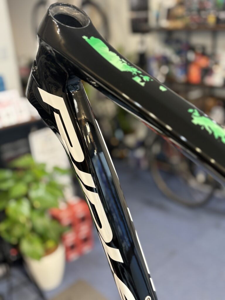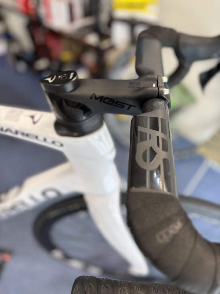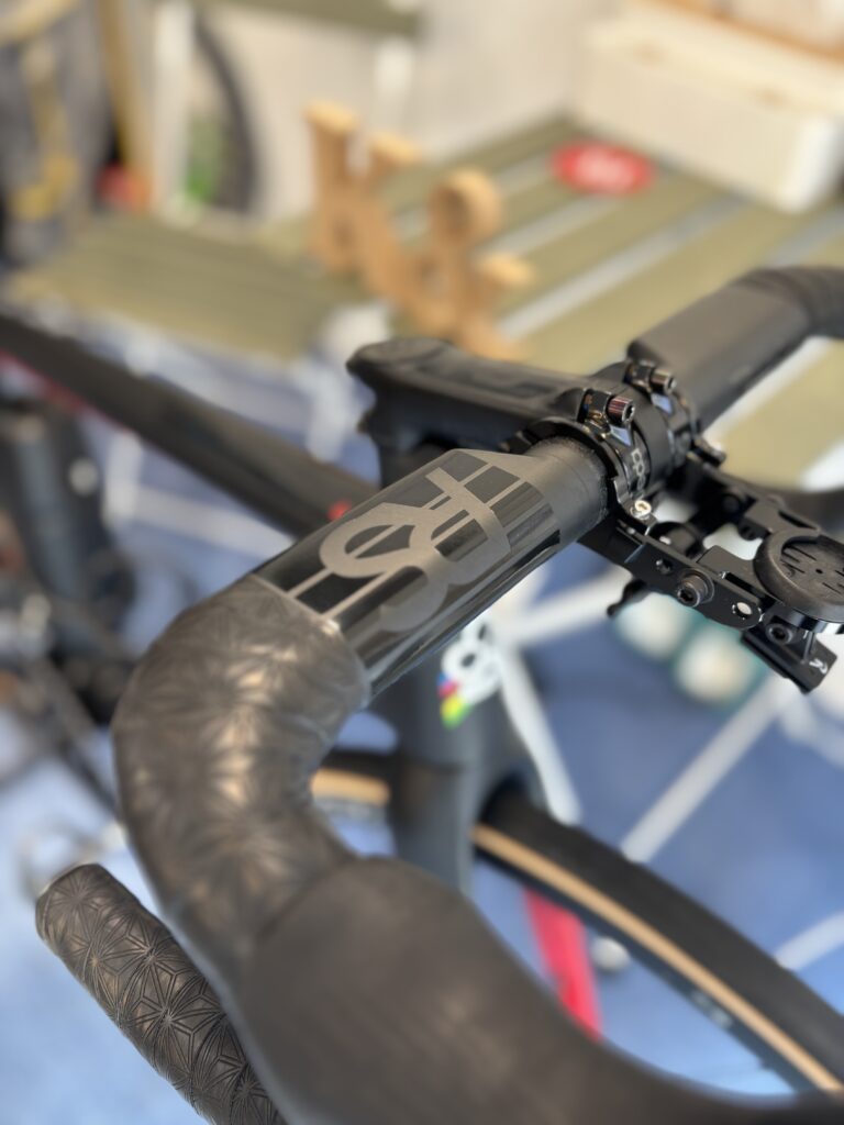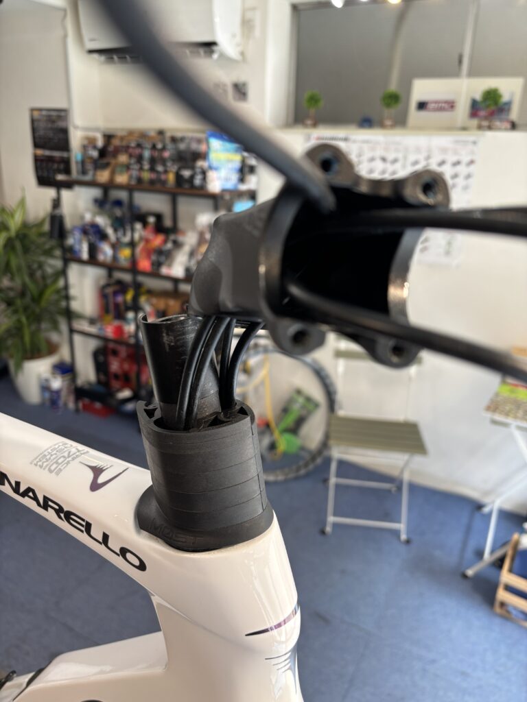 Pinarello PARIS のハンドル・ステム・STIレバー交換作業中。