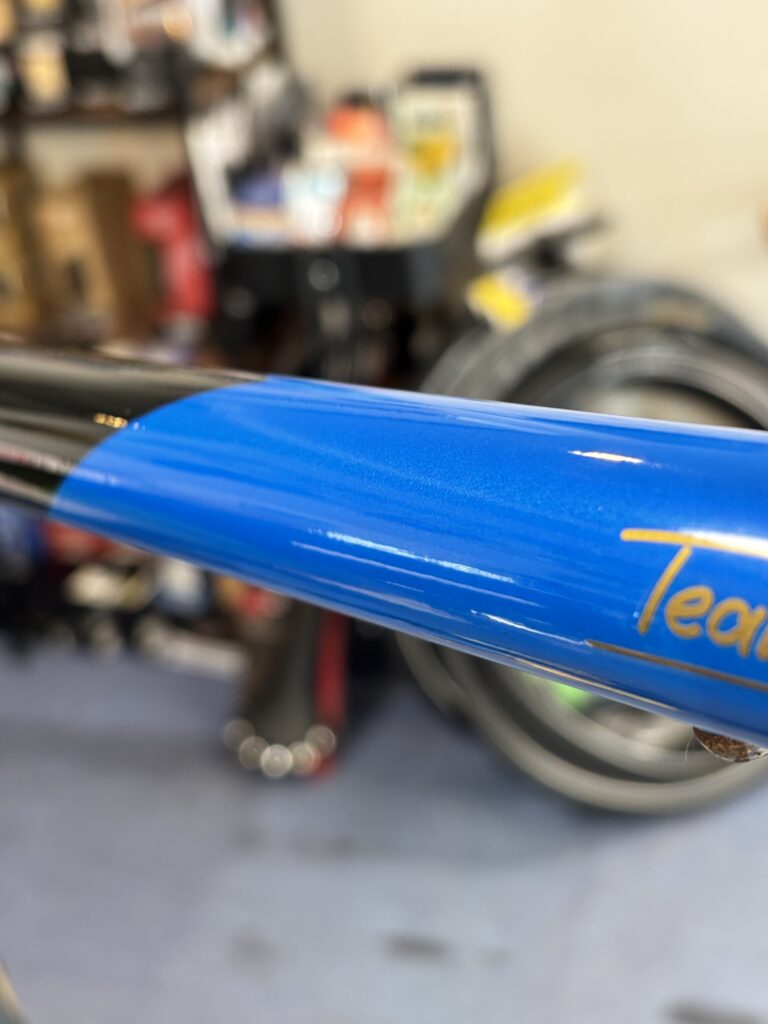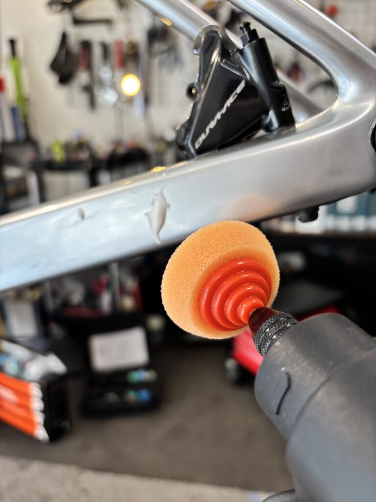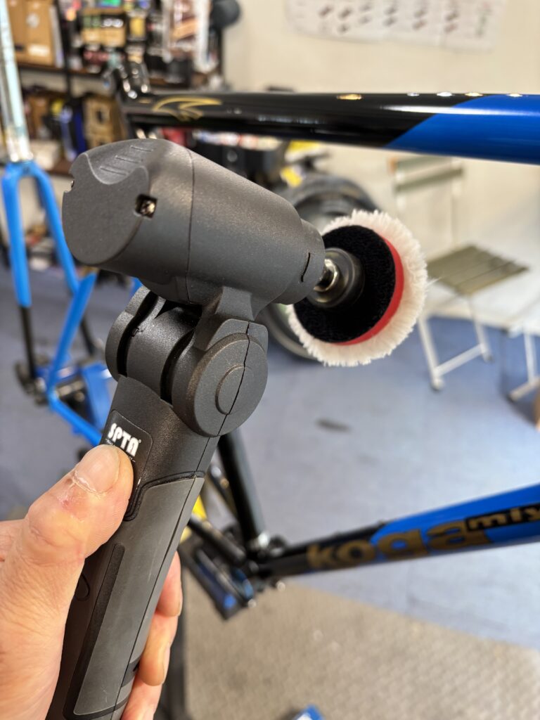 クロモリフレーム、パイプが細いのでポリッシャーも小さめを使用して磨きました。
